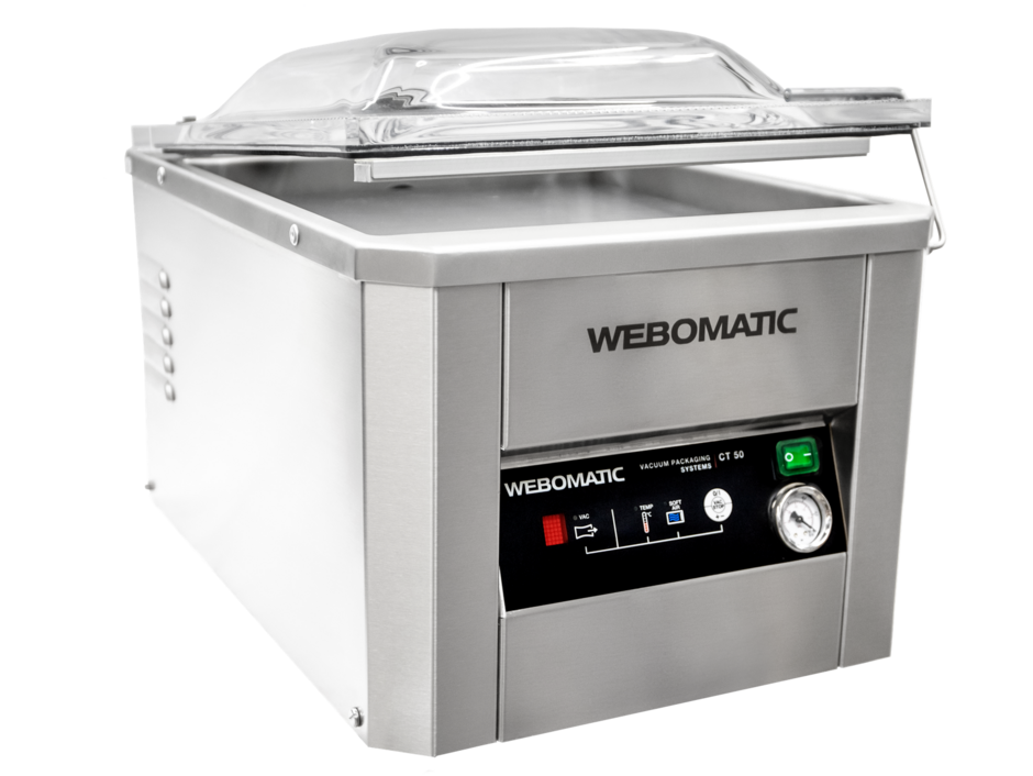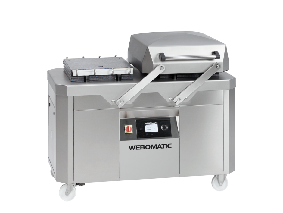 The duoMAT 450 double chamber vacuum sealer is ideal for efficiently packaging meat, sausages, fish, cheese, vegetables, and more in limited spaces. With two chambers and a swing lid, it allows continuous operation using bags up to 45 cm wide. It features the IGT Premium control system with three vacuum modes and up to 20 customizable programs. Made of stainless steel, it offers easy maintenance and a hygienic design that prevents water buildup.