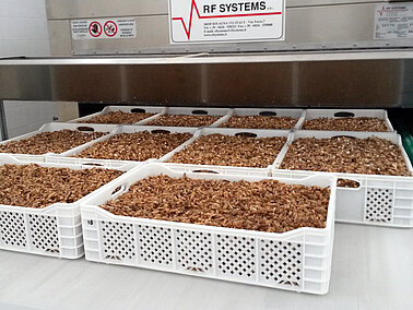 Ventajas: Los procesadores de alimentos suelen utilizar métodos de calentamiento convencionales, como vapor o aire caliente, para estabilizar los productos y eliminar los microorganismos nocivos. Sin embargo, estos métodos pueden ser lentos y desiguales, lo que afecta negativamente a las propiedades del producto. En cambio, el calentamiento por radiofrecuencia (RF) utiliza ondas para calentar los alimentos de forma uniforme e instantánea, lo que permite eliminar los microorganismos sin afectar a sus propiedades físicas, sensoriales y nutricionales. Las máquinas de RF son compactas y modulares, lo que permite añadir fácilmente capacidad de producción adicional. Además, los parámetros pueden ajustarse en el controlador lógico programable (PLC) para adaptar el proceso a cada producto. Existen máquinas de RF tanto discontinuas como con cinta transportadora, en función del tipo de producto y los requisitos de producción. Estas máquinas se diseñan y suministran en función de las necesidades específicas de cada cliente.