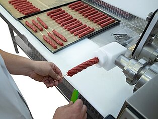 Las líneas de embutido VEMAG son muy versátiles y capaces de producir una amplia gama de productos. Pueden ajustarse y reequiparse fácilmente, lo que las hace adaptables a diversas necesidades de producción. Si en algún momento surge una necesidad que supere las capacidades de su equipo actual, la gama de máquinas modulares de VEMAG ofrece accesorios que pueden integrarse a la perfección. Estos implementos se conectan rápidamente y ofrecen la fiabilidad necesaria para cumplir sus compromisos desde el principio.
